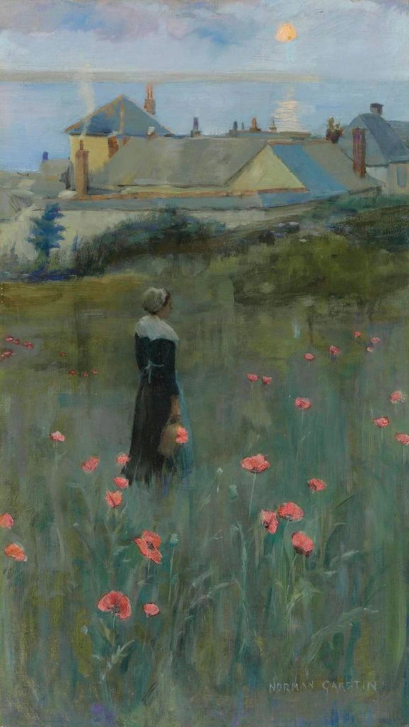 Norman Garstin, peintre impressionniste britannique, a su capturer l'essence des paysages naturels à travers son art. Actif à la fin du XIXe siècle, il a été influencé par les mouvements artistiques européens, notamment l'impressionnisme français. Garstin a souvent exploré les thèmes de la lumière et de la couleur, cherchant à représenter la nature dans toute sa splendeur. Les Coquelicots, une de ses œuvres les plus célèbres, témoigne de son habileté à transformer des scènes ordinaires en compositions vibrantes et poétiques, marquant ainsi son importance dans l'histoire de l'art.