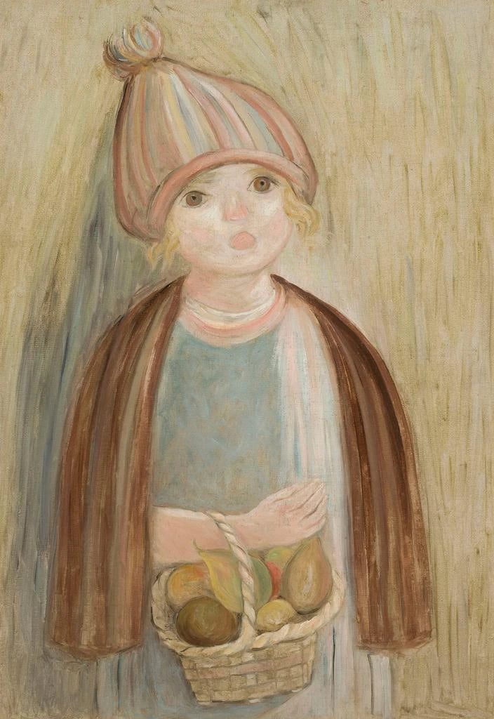 Druk artystyczny | Mała dziewczynka z koszykiem gruszek - Tadeusz Makowski