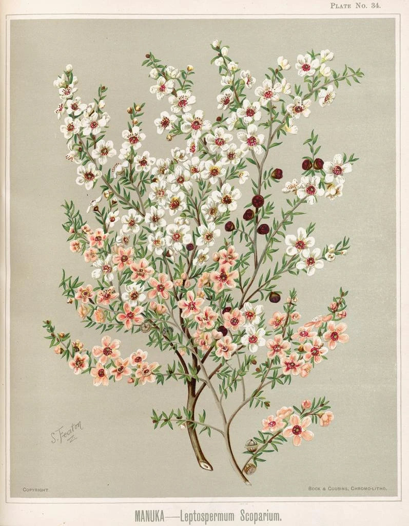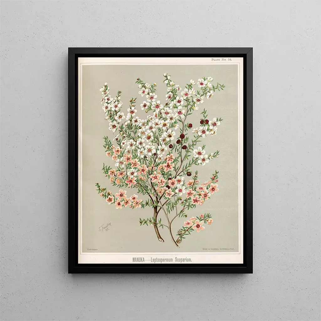 W 'Manuka Leptospermum scoparium', Sarah Featon z mistrzowską biegłością ilustruje tę roślinę, szeroko rozpoznawaną ze względu na jej właściwości lecznicze i znaczenie w kulturze maoryskiej. Featon, jako botaniczny artysta XIX wieku, potrafił połączyć precyzję naukową z wrażliwością artystyczną, tworząc dzieła, które wykraczają poza zwykłą ilustrację. Piękno manuki, z jej delikatnymi kwiatami i aromatycznymi liśćmi, jest uchwycone z dbałością, która przyciąga wzrok i pobudza wyobraźnię. Ten obraz jest nie tylko celebracją nowozelandzkiej bioróżnorodności, ale także zaproszeniem do zgłębiania więzi między naturą a kulturą. W nowoczesnym otoczeniu, to dzieło może wprowadzić odrobinę autentyczności i spokoju. Druk artystyczny tej ilustracji można odkryć na Artem Legrand.