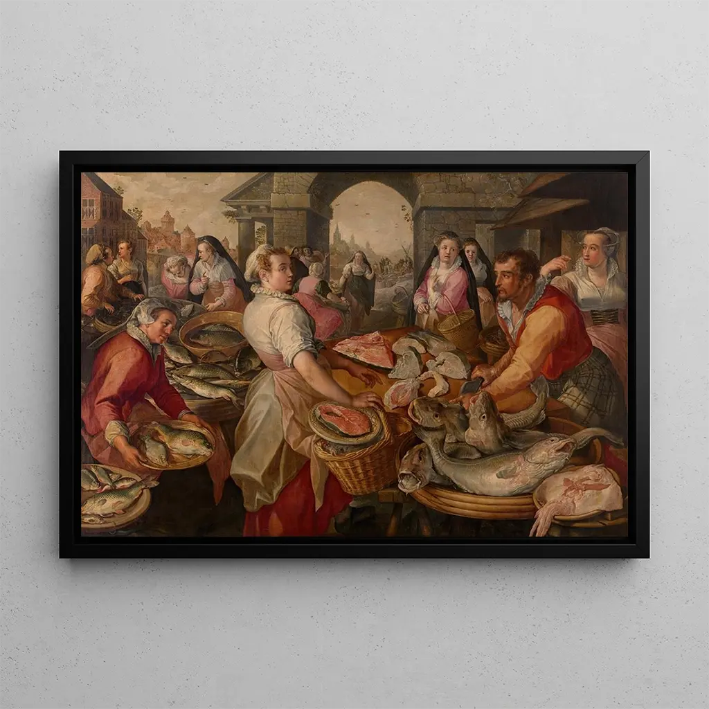 Marché aux poissons : une scène vivante de la vie quotidienne Le tableau "Marché aux poissons" de Joachim Beuckelaer dépeint une scène vibrante et animée, où l'on peut presque entendre le brouhaha du marché. Les couleurs riches et éclatantes, allant des rouges profonds aux bleus lumineux, créent une atmosphère chaleureuse et accueillante. La technique de Beuckelaer, caractérisée par un réalisme minutieux, permet de saisir les détails des poissons, des fruits de mer et des personnages qui interagissent dans ce cadre. Chaque élément est soigneusement agencé, offrant une composition harmonieuse qui attire le regard et invite à la contemplation de la vie quotidienne au XVIe siècle. Joachim Beuckelaer : un maître du réalisme flamand Joachim Beuckelaer, peintre flamand du XVIe siècle, est reconnu pour ses représentations de scènes de marché et de nature morte. Influencé par le style de Pieter Aertsen, Beuckelaer a su développer une approche unique qui allie la richesse des couleurs à une attention particulière aux détails. Actif à Anvers, il a contribué à l'essor de la peinture de genre, mettant en avant la vie quotidienne et les plaisirs simples de l'époque. Ses œuvres, souvent chargées de symbolisme, reflètent également la prospérité économique des Pays-Bas au cours de la Renaissance, faisant de lui une figure importante de l'art flamand. Une acquisition décorative aux multiples atouts La reproduction du "Marché aux poissons" est une pièce décorative idéale pour enrichir votre intérieur, que ce soit dans un salon, un bureau ou une chambre. Sa qualité d'impression et sa fidélité à l'œuvre originale garantissent un attrait esthétique indéniable. En intégrant ce tableau dans votre décoration, vous apportez une touche d'histoire et de culture qui suscitera l'admiration de vos invités. La scène dynamique et colorée de Beuckelaer ne manquera pas d'ajouter une ambiance chaleureuse et conviviale à votre espace de vie.