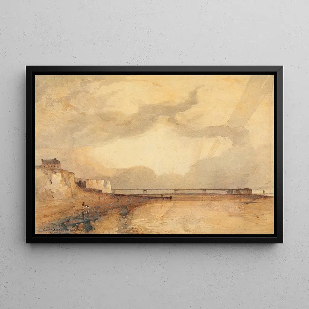 Druk artystyczny Marine, Brighton Pier przenosi nas na brzeg morza, gdzie horyzont zlewa się z niebem. Odcienie niebieskiego i zielonego mieszają się, tworząc uspokajającą atmosferę, podczas gdy akcenty światła nawiązują do odbić słońca na wodzie. Copley Fielding, mistrz pejzażu, używa techniki malarstwa olejnego, która ożywia fale i molo, sprawiając, że każdy szczegół jest niemal namacalny. Obraz zachęca do kontemplacji, pozwalając widzowi zanurzyć się w tym spokojnym dziele.