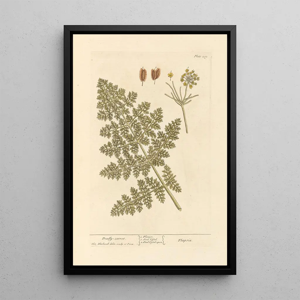 La reproduction de la Carotte Mortelle est un choix décoratif idéal pour ceux qui souhaitent ajouter une touche de nature à leur intérieur. Que ce soit dans un salon, un bureau ou une chambre, ce tableau apporte une élégance discrète et une atmosphère apaisante. Sa qualité d'impression et la fidélité aux détails de l'œuvre originale en font un élément attrayant pour les passionnés de botanique. En intégrant cette toile dans votre décoration, vous créez un espace harmonieux et inspirant, tout en célébrant la beauté de la flore sauvage.