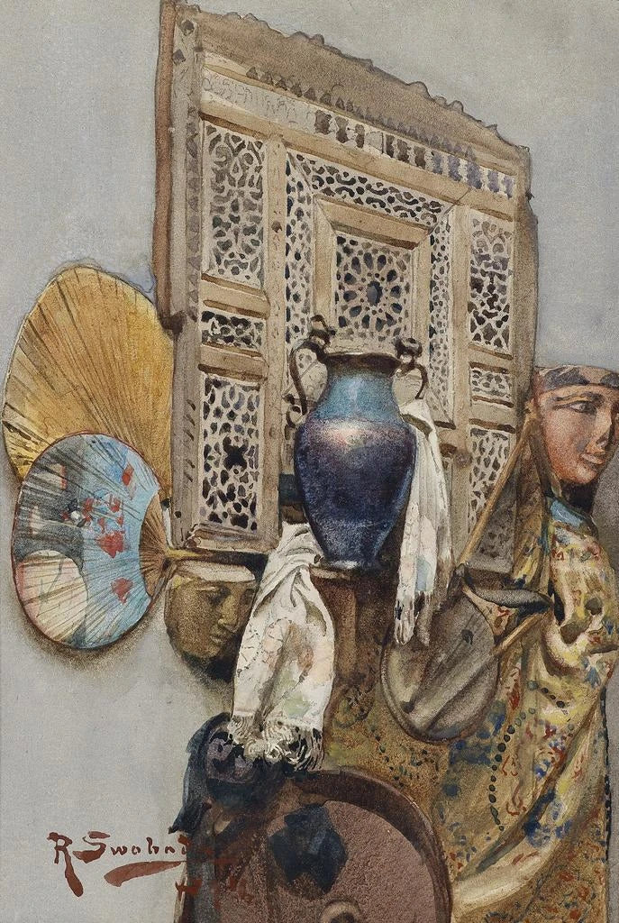 Rudolf Swoboda, aktywny pod koniec XIX wieku, jest artystą, którego prace wpisują się w nurt realizmu. Pod wpływem podróży na Wschód, potrafił wprowadzić do swoich dzieł różnorodne elementy kulturowe, świadcząc o niespożytej ciekawości dla artystycznych tradycji świata. Jego zdolność do uchwycenia światła i tekstury przedmiotów przyniosła mu uznanie w środowisku artystycznym jego epoki. Swoboda zdołał połączyć swoje europejskie dziedzictwo z inspiracjami orientalnymi, tworząc unikalny styl, który nadal wpływa na współczesnych artystów.