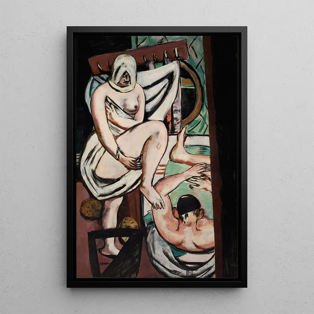 Max Beckmann, né en 1884, est l'une des figures majeures de l'expressionnisme allemand. Influencé par des mouvements artistiques tels que le cubisme et le surréalisme, il développe un style unique qui allie réalisme et abstraction. Ses œuvres, souvent marquées par des thèmes de souffrance et de rédemption, reflètent les tumultes de son époque, notamment les conséquences de la Première Guerre mondiale. "Le Bain" s'inscrit dans une période où Beckmann cherche à explorer les complexités de la condition humaine, faisant de lui un artiste incontournable du XXe siècle.