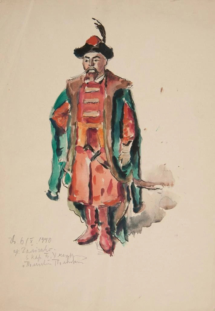 L'œuvre "Homme en kontusz avec un sabre" d'Ivan Ivanec dépeint un personnage majestueux, revêtu d'un kontusz, une robe traditionnelle polonaise, qui évoque à la fois la noblesse et la force. Les couleurs riches et vibrantes, allant des rouges profonds aux dorés éclatants, créent une atmosphère dynamique et vivante. La technique de l'artiste, mêlant réalisme et touches impressionnistes, permet de ressentir la texture des tissus et la brillance des métaux. Ce tableau invite à une contemplation profonde, révélant non seulement la beauté du sujet, mais aussi l'héritage culturel qu'il incarne.