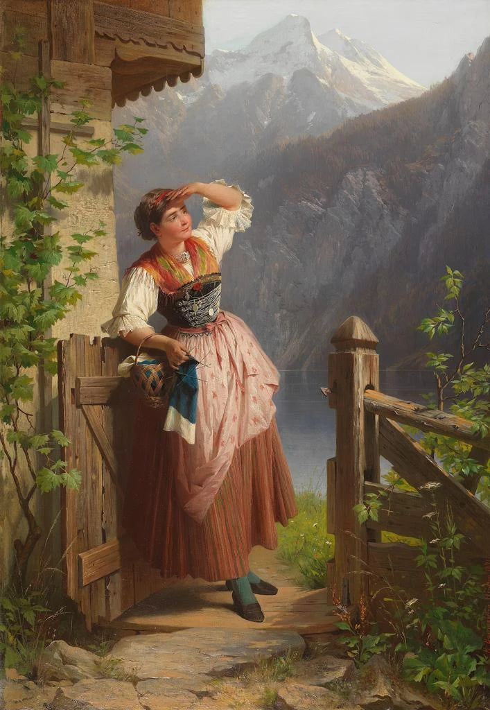 Obraz Młoda dziewczyna wypatrująca - Peter Baumgartner | Druk artystyczny