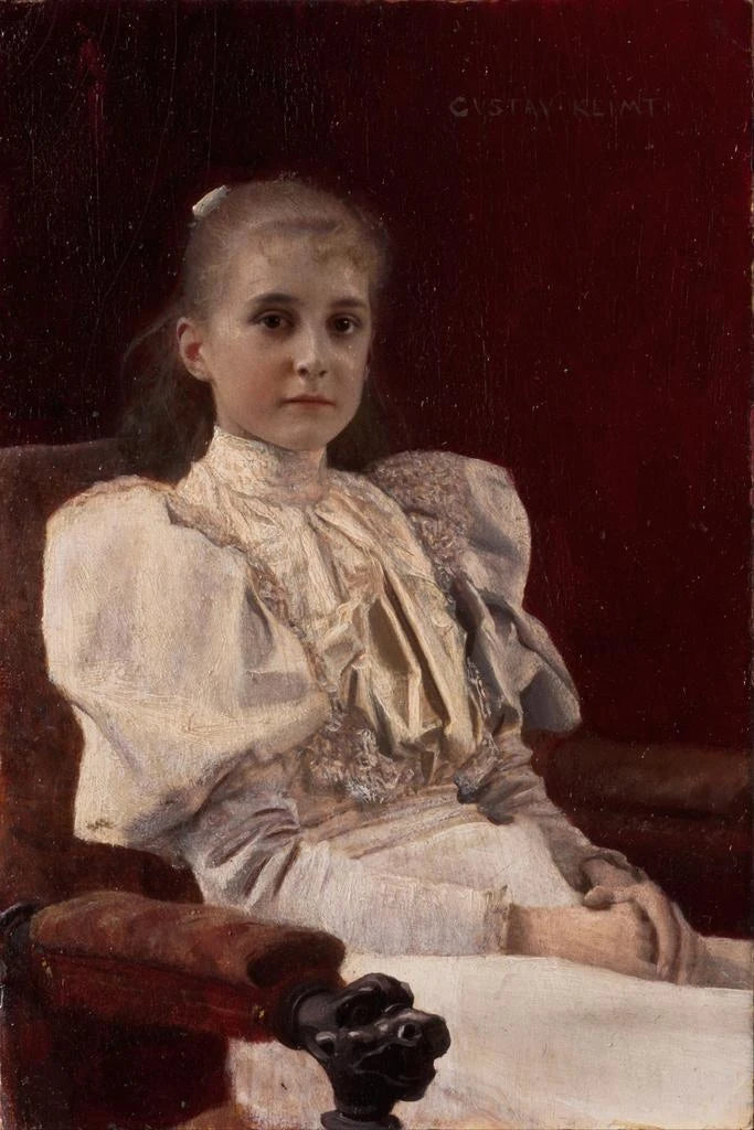 W "Młoda dziewczyna siedząca" Gustav Klimt oferuje intymny obraz młodej kobiety, uchwyconej w momencie spokoju. Obraz wyróżnia się ciepłymi kolorami i delikatnymi motywami, typowymi dla secesji. Postawa młodej dziewczyny, lekko zwróconej na bok, tworzy łagodną i uspokajającą dynamikę. Detale ozdobne otaczające temat dodają wizualnej bogactwa, podczas gdy teksturowane tło wywołuje atmosferę marzenia. To dzieło, jednocześnie proste i złożone, zachęca do refleksji nad pięknem i spokojem chwili obecnej.
