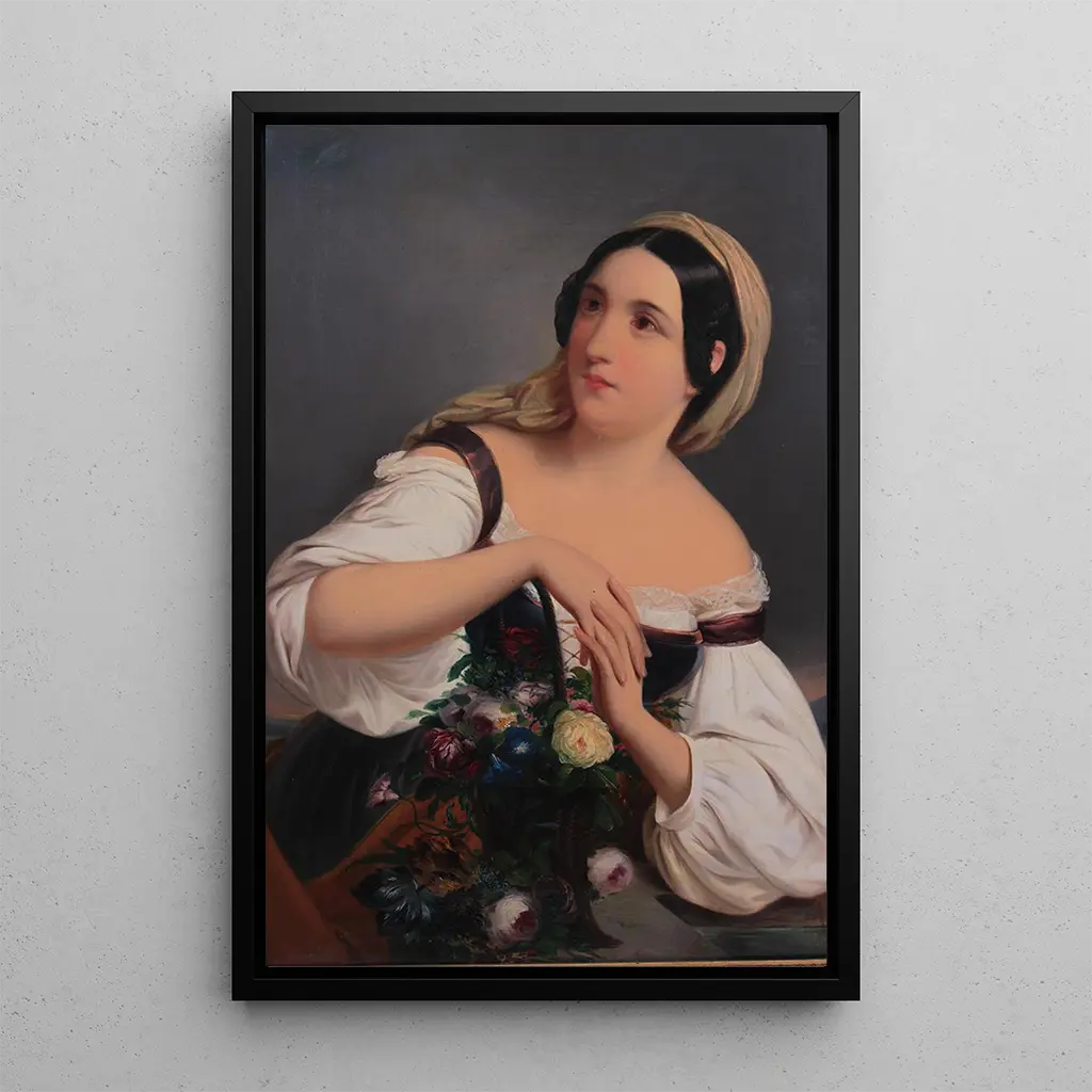 Obraz Młoda dziewczyna z koszem kwiatów - Mihael Stroj | Druk artystyczny