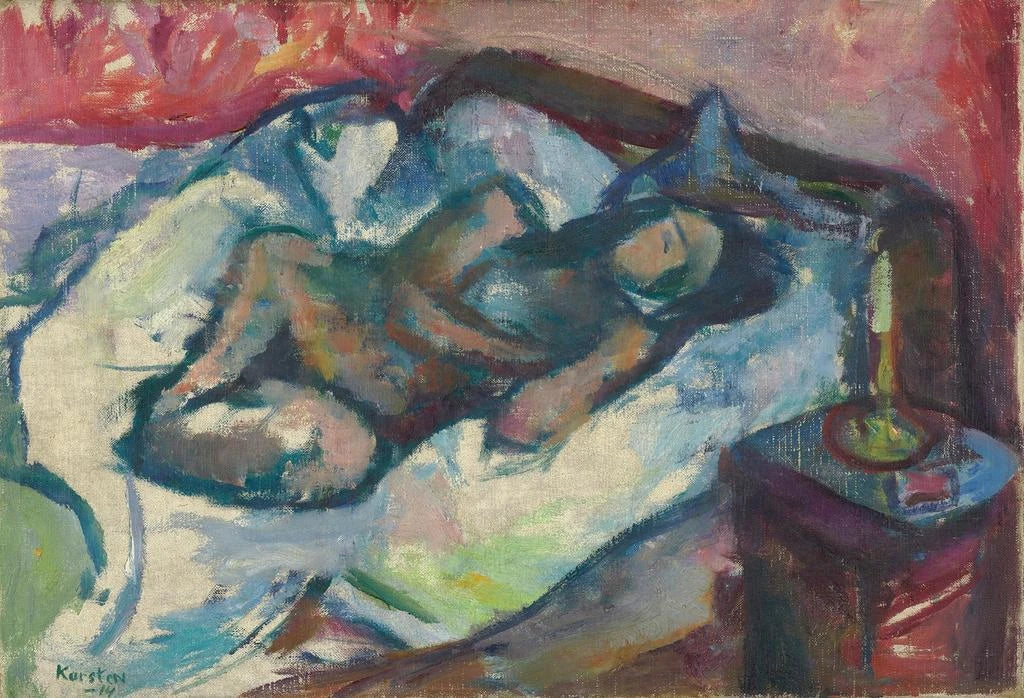 Druk artystyczny | Młoda naga w łóżku - Ludvig Karsten