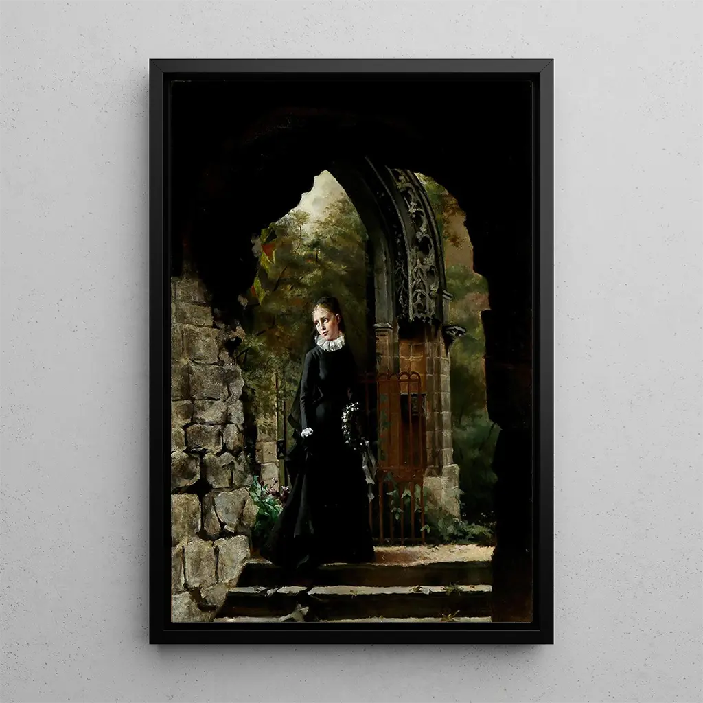 "Jeune veuve" autorstwa Emmy Sparre to poruszające dzieło, które uchwyca istotę straty i odporności. Obraz przedstawia kobietę o zamyślonym spojrzeniu, elegancko ubranej, lecz wyraz jej twarzy zdradza głęboką smutek. Ciemne kolory, połączone z akcentami światła, tworzą atmosferę jednocześnie melancholijną i pełną godności. Sparre potrafi przekazać surową emocję poprzez subtelne szczegóły kompozycji, zachęcając widza do odczuwania złożoności uczuć związanych z żałobą i osobistą odbudową.