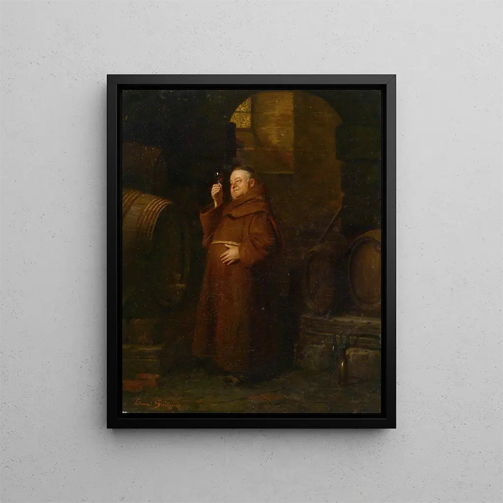 Eduard von Grützner, urodzony w 1846 roku, był niemieckim malarzem, którego twórczość była silnie inspirowana ruchem realizmu. Jego zdolność do uchwycenia scen z codziennego życia z nutą humoru i ciepła zapewniła mu miejsce w sercach miłośników sztuki. Grützner często interesował się tematami religijnymi i życiem klasztornym, ale zawsze z podejściem wykraczającym poza zwykłą reprezentację. Jego talent do przedstawiania postaci w pełnym działaniu, takich jak ten mnich degustujący wino, świadczy o jego umiejętności humanizacji swoich bohaterów. Przez swoje dzieła, on