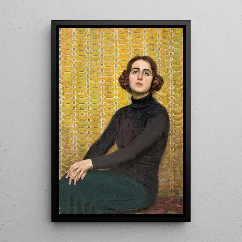 Dans "Modèle féminin avec fond jaune", Osmar Schindler nous offre une vision saisissante de la féminité à travers un portrait lumineux et vibrant. La toile, dominée par un fond jaune éclatant, met en valeur la grâce et l'élégance de la modèle, dont les traits délicats et l'expression douce captivent le regard. Les nuances de couleur, allant des ocres aux dorés, créent une atmosphère chaleureuse et accueillante, tandis que la technique de Schindler, mêlant réalisme et impressionnisme, donne vie à cette représentation. Ce tableau est une véritable ode à la beauté et à la sensualité féminine.