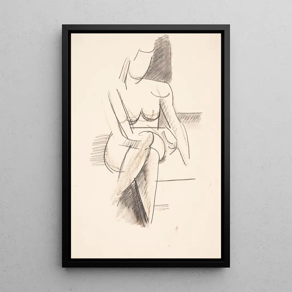 Reprodukcja obrazu "Model kobiety siedzący, widok z przodu" to element dekoracyjny, który wzbogaci każde wnętrze, niezależnie od tego, czy jest to salon, biuro czy sypialnia. Jakość druku i wierne oddanie kolorów oryginalnych gwarantują znakomity efekt estetyczny. Wprowadzając tę płótno do swojej aranżacji, dodajesz odrobinę elegancji i wyrafinowania, jednocześnie celebrując sztukę nowoczesną. Ten obraz, dzięki swojej ponadczasowej urodzie, staje się prawdziwym punktem centralnym, budzącym podziw wszystkich, którzy na niego spojrzą.