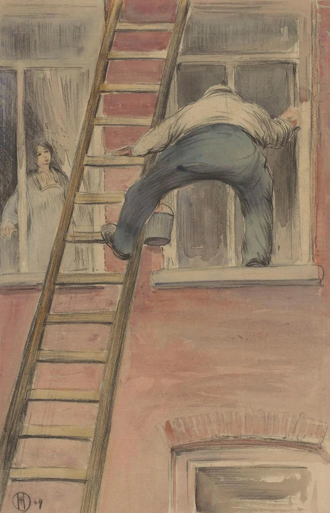 « Laveur de vitres », œuvre emblématique de Herman Heijenbrock, capture un moment de la vie quotidienne avec une précision remarquable. Ce tableau, où un homme s'affaire à nettoyer les fenêtres d'un bâtiment, dépeint une scène à la fois ordinaire et fascinante. Les couleurs vives et les jeux de lumière créent une atmosphère dynamique, tandis que la technique de Heijenbrock met en avant les détails du personnage et de son environnement. L'artiste parvient à transmettre une sensation de mouvement et d'énergie, rendant hommage à ces travailleurs souvent invisibles qui contribuent à la beauté des villes.