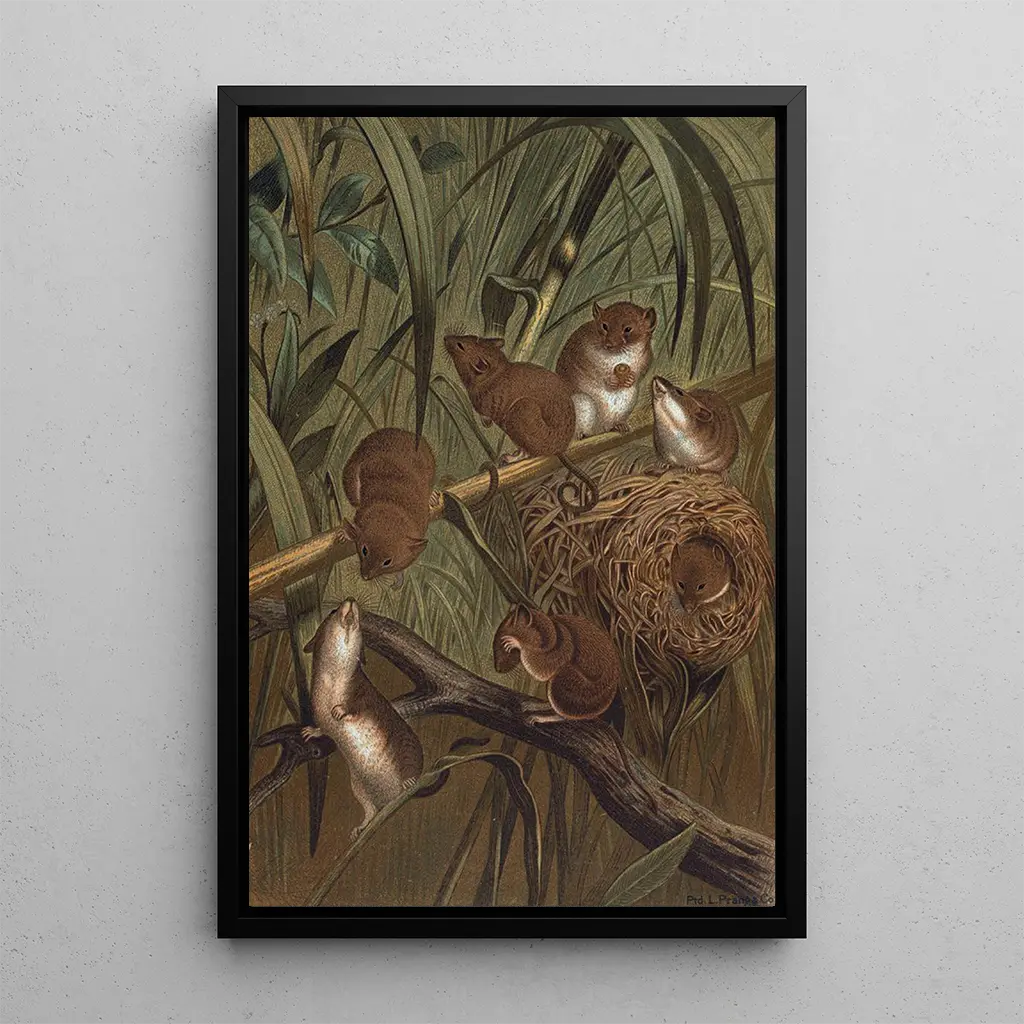 La druk artystyczny de la souris des moissons nous plonge dans un univers où la douceur et la fragilité de la nature se rencontrent. Avec des teintes douces de brun et de beige, l'œuvre de John George Wood dépeint cette petite créature dans son habitat naturel, entourée de brins d'herbe et de fleurs sauvages. La technique de l'artiste, qui mêle aquarelle et dessin, crée une atmosphère paisible et contemplative, invitant le spectateur à apprécier la beauté des détails souvent négligés de notre environnement. Chaque coup de pinceau semble capturer le mouvement furtif de la souris, rendant l'œuvre vivante et vibrante.
