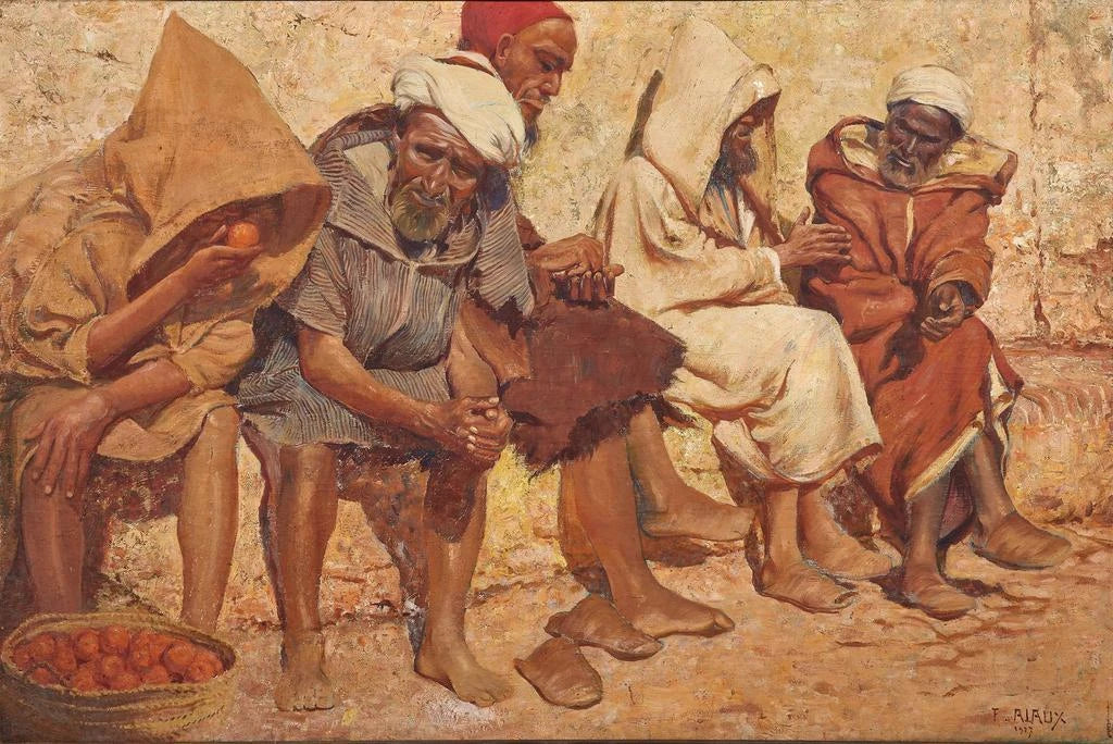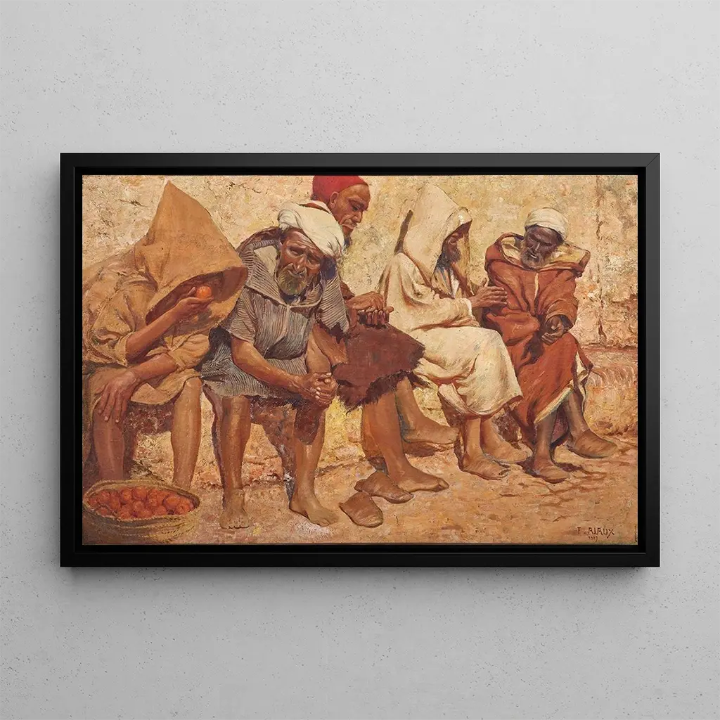 Na ławce, Tanger: chwila przerwy w słońcu W "Na ławce, Tanger" François Alaux uchwycił prosty i autentyczny moment życia. Obraz przedstawia słoneczną scenę, na której postacie odpoczywają, otoczone typową architekturą Tangeru. Ciepłe i jasne kolory oddają gorąc klimat śródziemnomorski, podczas gdy delikatne cienie dodają głębi kompozycji. Alaux z powodzeniem przekazuje atmosferę spokoju i serdeczności, zachęcając widza do wyobrażenia sobie tego idyllicznego miejsca, do dzielenia się chwilą ciszy i kontemplacji. François Alaux: artysta w sercu światła François Alaux, aktywny na początku XX wieku, jest znany ze swoich dzieł celebrujących światło i kolor. Pod wpływem fowizmu, wypracował własny styl, który podkreśla kontrasty i harmonijne zestawienia chromatyczne. Jego pobyt w Tangerze głęboko wpłynął na jego twórczość, pozwalając mu uchwycić esencję tego tętniącego życiem i kolorowego miasta. Alaux potrafił uwiecznić codzienne chwile, czyniąc swoje obrazy oknami na momenty wspólnego szczęścia, jednocześnie przyczyniając się do wzbogacenia francuskiego artystycznego dziedzictwa swojej epoki. Dekoracyjny druk artystyczny o wielu zaletach Druk artystyczny "Na ławce, Tanger" to doskonały wybór dekoracyjny, który wniesie do wnętrza odrobinę egzotyki i ciepła. Niezależnie od tego, czy zawisnie w salonie, czy w biurze, przyciąga wzrok i wywołuje rozmowy. Jakość druku gwarantuje wierne oddanie kolorów i szczegółów oryginalnego dzieła, czyniąc ten element cennym dodatkiem do Twojej kolekcji. Wybierając to dzieło, wprowadzasz do swojego życia spokojną i słoneczną atmosferę, jednocześnie celebrując sztukę François Alaux.