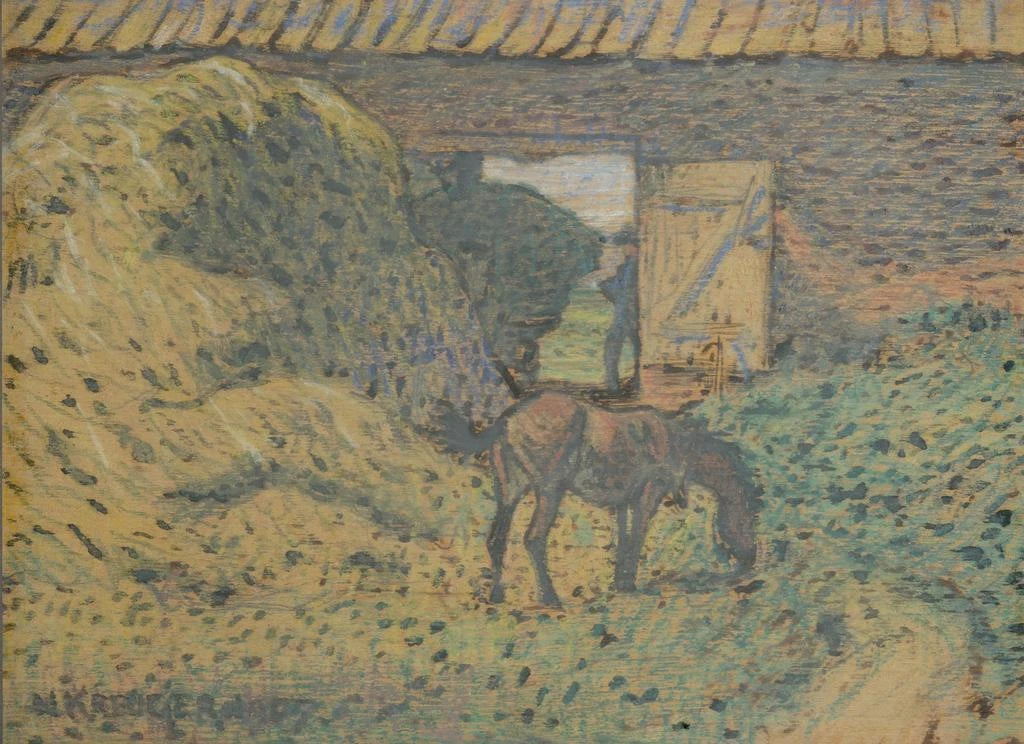 Nils Kreuger, peintre suédois du début du XXe siècle, est célèbre pour ses représentations de paysages et de scènes de la vie quotidienne. Influencé par le mouvement impressionniste, il a su intégrer des éléments de lumière et de couleur qui caractérisent son style unique. Kreuger a souvent exploré la beauté des paysages nordiques, cherchant à transmettre l’émotion et l’atmosphère de ses sujets. Son œuvre Au grenier à foin est emblématique de son approche, alliant réalisme et poésie, et témoignant de son attachement à la nature et à la vie rurale.