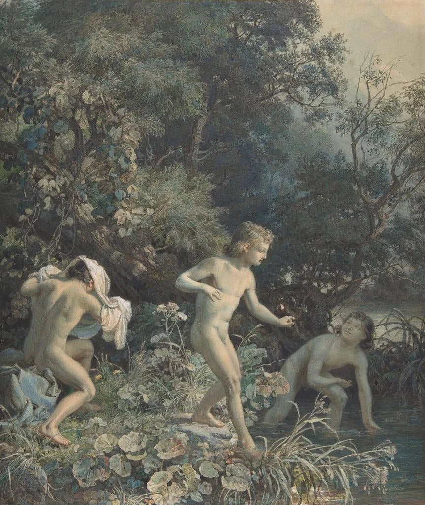 Druk artystyczny Nad rzeką z trzema chłopcami kąpiącymi się - Christian Friedrich Gille – Fascynujące wprowadzenie
