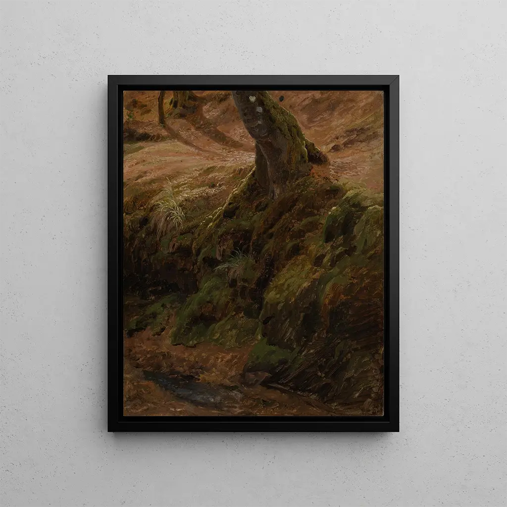 Leśny nasyp z pniem drzewa - Johann Wilhelm Schirmer