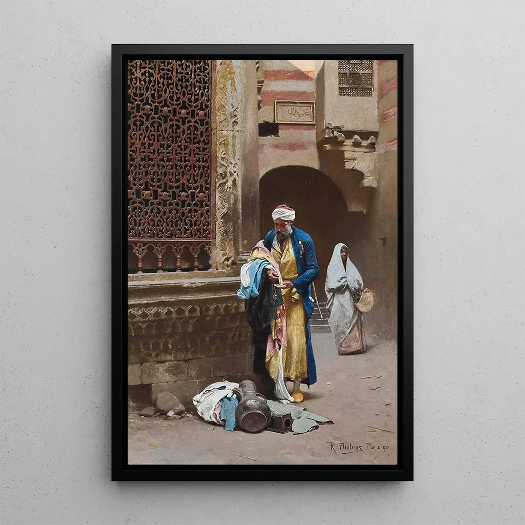 Raphael von Ambros, austriacki malarz aktywny w XIX wieku, jest znany ze swoich dzieł ilustrujących sceny życia orientalnego. Pod wpływem podróży i egzotyki kultur, które spotkał, potrafił uchwycić chwile życia z niezwykłą precyzją. Jego styl, charakteryzujący się żywym realizmem, świadczy o rosnącym zainteresowaniu Europy Orientem w tym okresie. Dzieła von Ambrosa, w tym "Un marchand du Caire", są cennymi świadectwami epoki, w której wymiana kulturowa i handlowa rozwijała się dynamicznie, odzwierciedlając trwałe zainteresowanie tradycjami i stylami życia innych regionów świata.