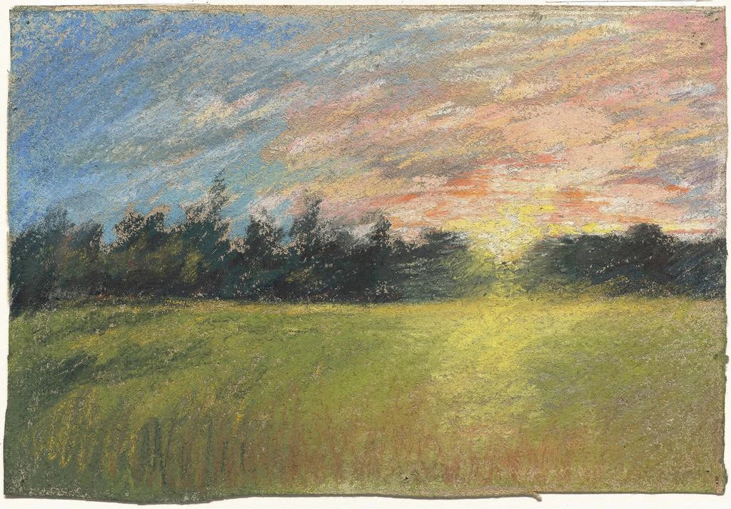 Un pré au coucher du soleil : harmonia między naturą a światłem