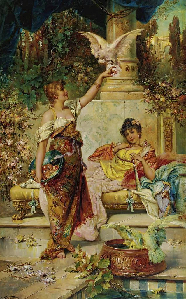 Hans Zatzka, actif à la fin du XIXe siècle, est reconnu pour son talent à fusionner le romantisme et le symbolisme dans ses œuvres. Originaire de Vienne, il a été influencé par les courants artistiques de son époque, tout en développant un style personnel qui lui est propre. Ses tableaux, souvent peuplés de figures féminines idéalisées et de paysages oniriques, témoignent de son intérêt pour la beauté et l'harmonie. Zatzka a su capturer l'esprit de son temps, faisant de lui une figure marquante de l'art viennois, dont l'héritage perdure à travers ses créations.