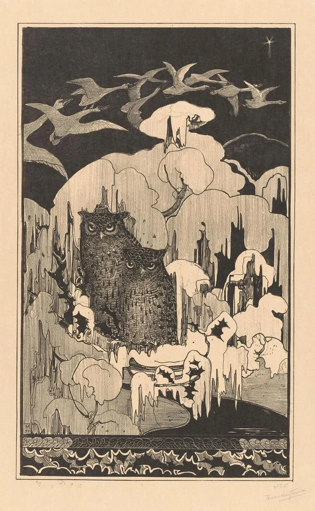 Theo van Hoytema, né en 1863 aux Pays-Bas, est un artiste dont le travail s’inscrit dans le mouvement naturaliste du début du XXe siècle. Influencé par les paysages néerlandais et la lumière unique de son pays, il développe un style qui allie précision et poésie. Sa carrière est marquée par une quête de la beauté dans la nature, ainsi que par une fascination pour les scènes nocturnes. "Nuit de Noël" témoigne de son habileté à capturer des moments éphémères, tout en reflétant l’importance de l’harmonie entre l’homme et son environnement. Son œuvre continue d’inspirer les amateurs d’art et les collectionneurs.
