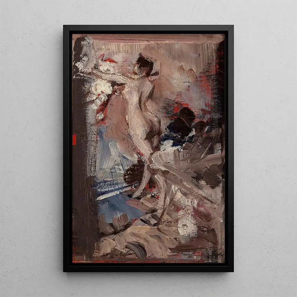 W "Nu kobiecym z futrem tygrysa" Giovanni Boldini oferuje odważną wizję kobiecego piękna, gdzie zmysłowość łączy się z egzotyką. Kompozycja przedstawia nagą kobietę, owiniętą futrem tygrysa, które kontrastuje z delikatnością jej skóry. Ciepłe kolory i bogate tekstury tworzą atmosferę zarówno intymną, jak i prowokującą. Boldini, dzięki mistrzostwu w operowaniu światłem i cieniem, potrafi uchwycić istotę kobiecości, zapraszając widza do eksploracji tej dualności między siłą a delikatnością.