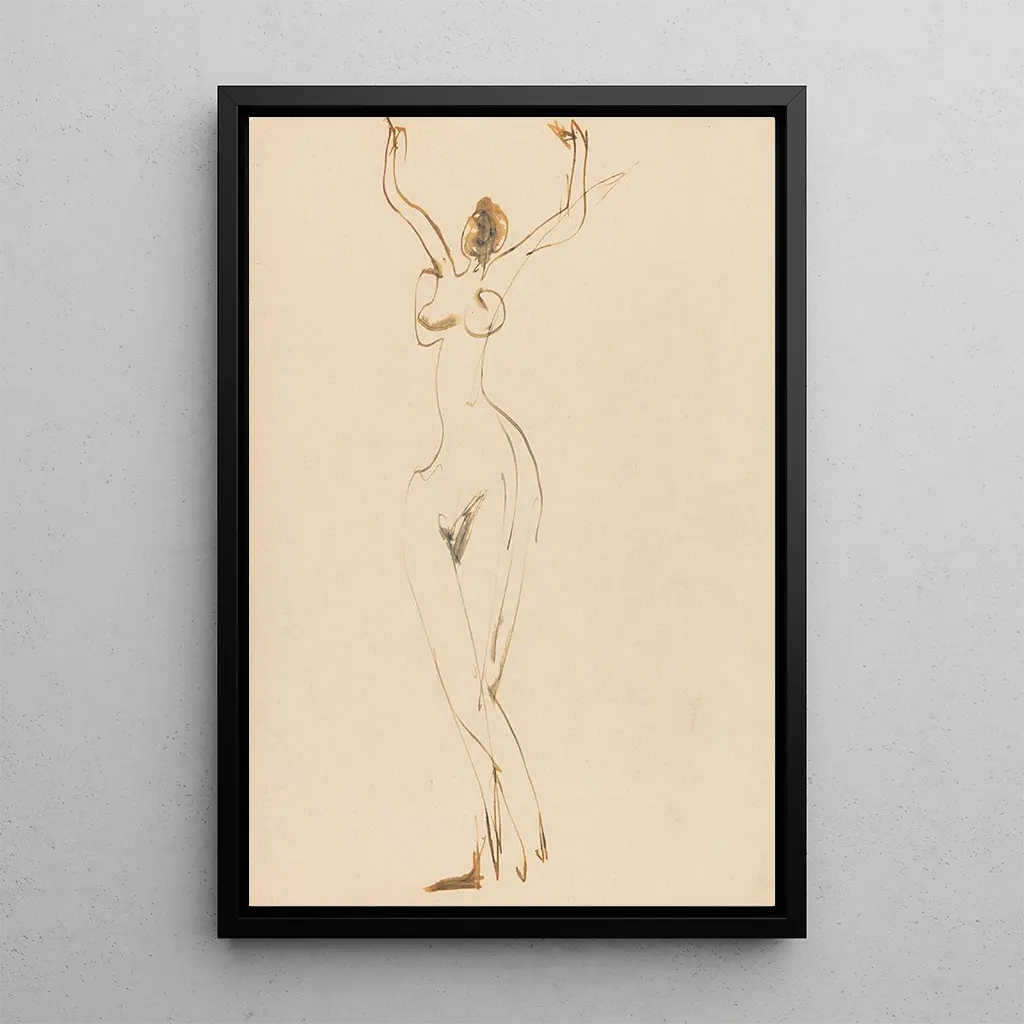 Ernst Ludwig Kirchner, né en 1880, est l'un des principaux représentants de l'expressionnisme, un mouvement qui a cherché à exprimer des émotions intenses à travers l'art. Influencé par les arts primitifs et les mouvements avant-gardistes, Kirchner a développé un style unique qui allie couleurs vives et formes stylisées. Son travail a souvent exploré les thèmes de la modernité, de la solitude et de la sensualité, reflétant les tensions de son époque. "Nu féminin dansant dans l'atelier" témoigne de son intérêt pour la représentation du corps féminin, tout en s'inscrivant dans une réflexion plus large sur la condition humaine.