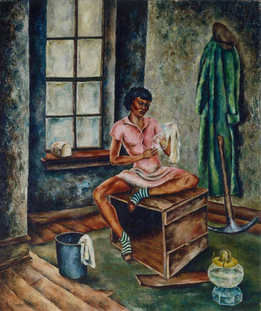 Styl "Obowiązków" charakteryzuje się subtelną harmonią między płynnymi liniami a potężnymi formami. Charles Davis używa palety kolorów, które, choć zniuansowane, tworzą uderzający kontrast, wzmacniając tym samym wizualny efekt dzieła. Drobne, starannie wykonane detale świadczą o imponującej technicznej biegłości, ale to przede wszystkim sposób, w jaki artysta potrafi uchwycić istotę ludzkich emocji, czyni to dzieło tak wyjątkowym. Każdy pociągnięcie pędzla zdaje się rezonować z intensywnością, która przekracza zwykłe ramy płótna, zapraszając widza do refleksji nad własnymi obowiązkami i zaangażowaniami w społeczeństwie. "Obowiązki" nie są tylko dziełem sztuki; stają się lustrem, odzwierciedlając nasze własne walki i aspiracje.