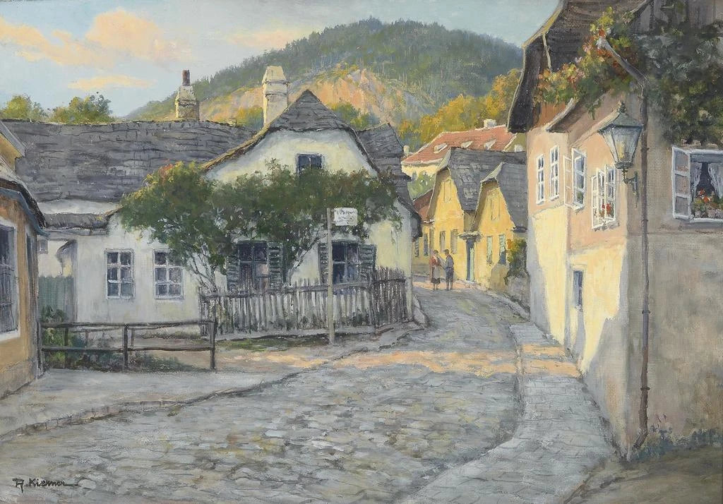 Rudolf Kierner, wpływowy artysta początku XX wieku, wpisuje się w tradycję wielkich europejskich pejzażystów. Wykształcony w szkołach artystycznych Wiednia, był pod wpływem ruchów impresjonistycznych i postimpresjonistycznych, które zrewolucjonizowały postrzeganie światła i koloru. Jego dzieło, choć mniej znane niż dzieła jego współczesnych, świadczy o unikalnej wrażliwości na piękno natury i harmonię form. Kierner potrafił uchwycić esencję pejzaży miejskich i wiejskich, oferując poetycką wizję swojej epoki, naznaczonej głębokimi zmianami społecznymi i artystycznymi.