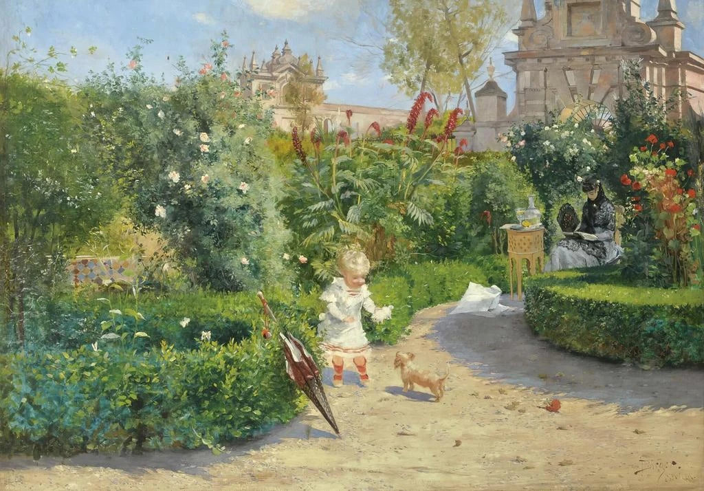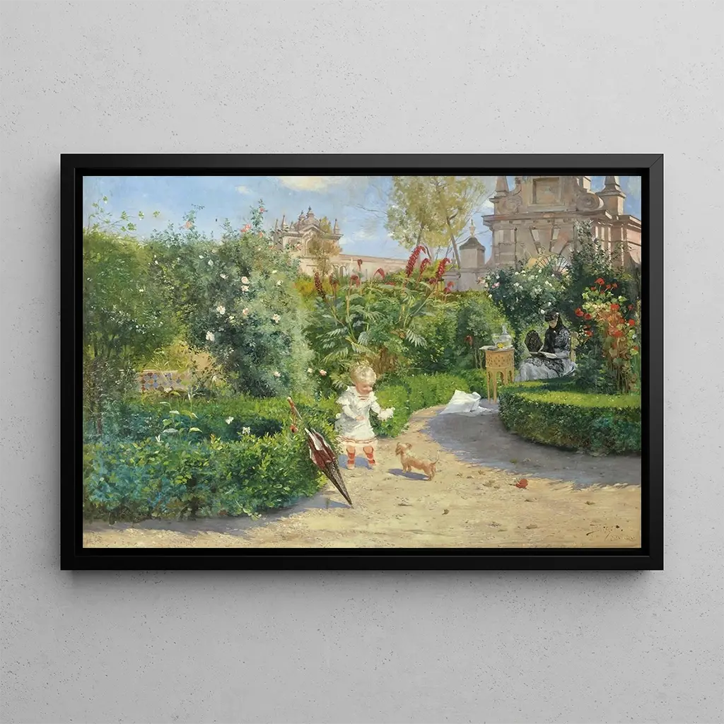 "Les Jardins de Murillo à Séville" autorstwa Hugo Birgera to dzieło, które przywołuje piękno krajobrazów Andaluzji za pomocą jaskrawych kolorów i delikatnego światła. Obraz przedstawia bujny ogród, w którym kwiaty rozkwitają pod słońcem, tworząc żywy i pełen spokoju pejzaż. Birger, dzięki swojej technice impresjonistycznej, potrafi przekazać spokojną atmosferę tego ikonicznego miejsca, zapraszając widza do zanurzenia się w tym czarującym otoczeniu. Drobne szczegóły roślin i cieni dodają dziełu niemal dotykową wymowę, czyniąc doświadczenie wizualne jeszcze bardziej immersyjnym.