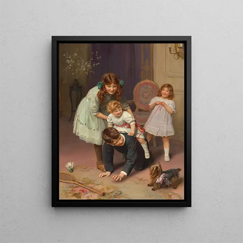 Arthur John Elsley, urodzony w 1855 roku, był angielskim malarzem, którego talent zdołał wywrzeć wpływ na scenę artystyczną swojego czasu. Wykształcony w Royal Academy, rozwinął unikalny styl łączący tradycję z nowoczesnością. Jego pasja do przedstawiania dzieci i zwierząt uczyniła go cenionym artystą, szczególnie wśród rodzin arystokracji wiktoriańskiej. Elsley potrafił uchwycić niewinność i piękno dzieciństwa poprzez sceny z codziennego życia, czyniąc go pionierem w tej dziedzinie. Jego wpływ trwa do dziś, inspirując wielu współczesnych artystów, którzy pragną zgłębiać tematy nostalgii i prostoty. Dzięki swoim dziełom zdołał nawiązać silną więź emocjonalną z publicznością, a jego dziedzictwo nadal żyje poprzez