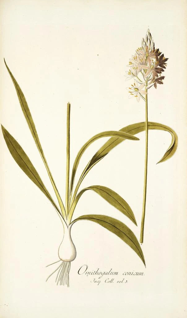 Nikolaus Joseph Freiherr von Jacquin, botanik i artysta XVIII wieku, odegrał kluczową rolę w rozwoju druków artystycznych botanicznych. Wykształcony w Wiedniu, był pod wpływem naukowych odkryć swojej epoki i podróżował do kolonii, aby badać lokalną florę. Jego praca przyczyniła się do lepszego zrozumienia roślin egzotycznych i dokumentacji różnorodności biologicznej. 'Ornithogalum conicum' wpisuje się w tę tradycję, łącząc naukową rygorystyczność z artystyczną wrażliwością. Jacquin jest ceniony za umiejętność łączenia sztuki i nauki, czyniąc swoje dzieła nieodzownymi odniesieniami dla botaników i artystów.