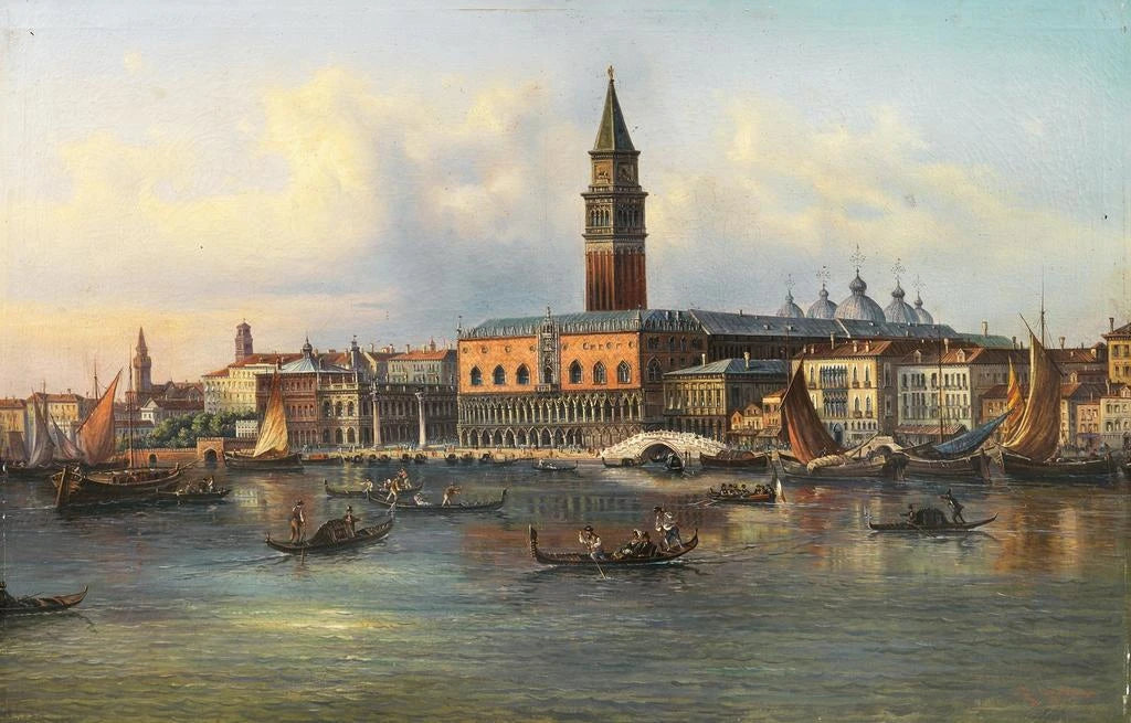 Giovanni Grubacs, peintre du XIXe siècle, est souvent associé à l'école vénitienne, où il a su capturer la beauté de sa ville natale à travers ses œuvres. Influencé par les grands maîtres de la Renaissance, Grubacs a développé un style qui mêle romantisme et réalisme. Ses paysages et scènes urbaines reflètent une profonde admiration pour l'architecture et l'atmosphère de Venise. En tant qu'artiste, il a joué un rôle important dans la préservation de l'héritage artistique de la ville, offrant aux générations futures un aperçu de son charme intemporel. Le "Palais des Doges" est l'une de ses œuvres les plus emblématiques, témoignant de son talent et de son attachement à sa ville.