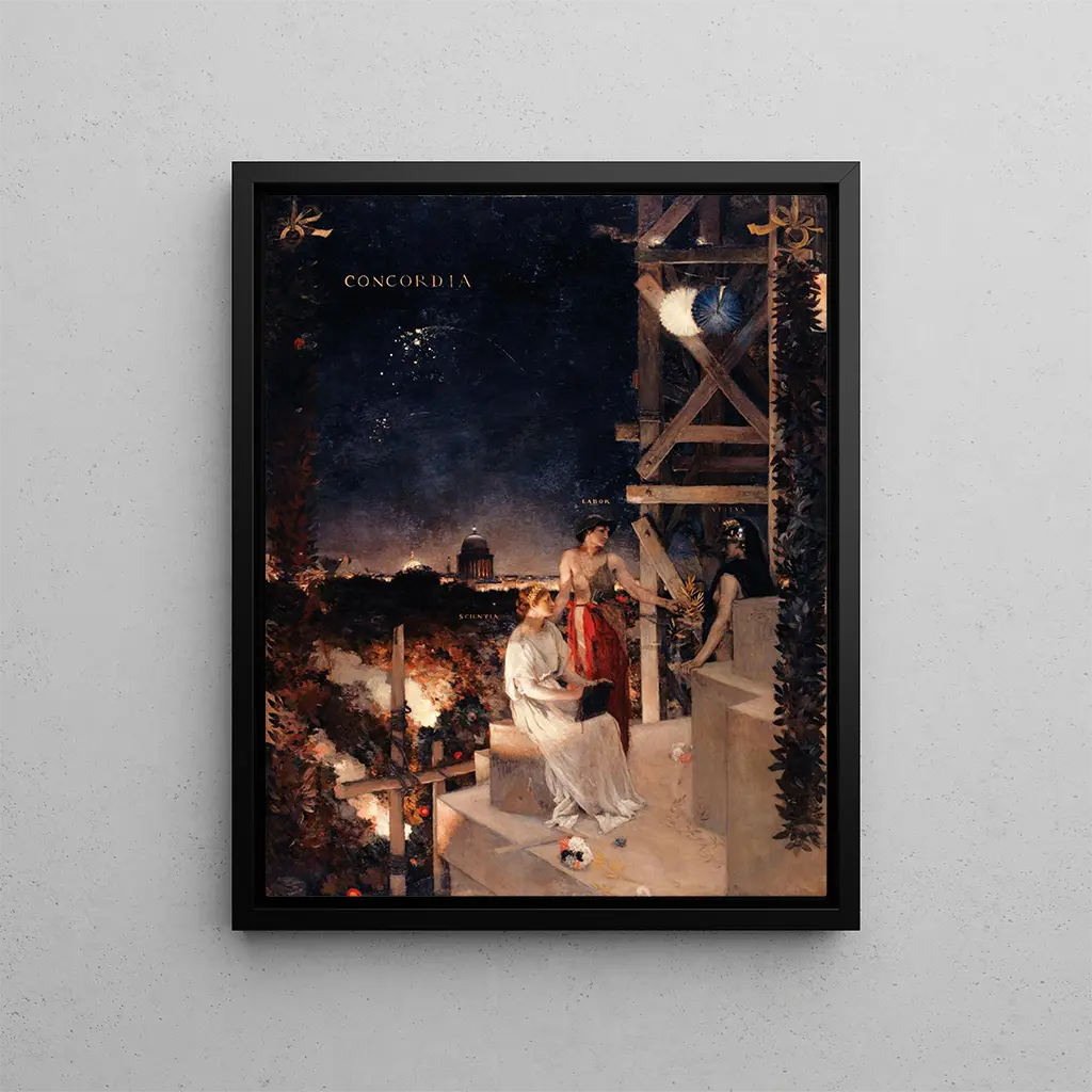 Jean Charles Cazin, un peintre impressionniste français, est célèbre pour ses scènes de la vie quotidienne et ses paysages poétiques. Dans son œuvre "Souvenir de fête à Paris", Cazin capture l'effervescence d'une célébration parisienne, utilisant une palette de couleurs vives et lumineuses. La composition dégage une atmosphère joyeuse et dynamique, typique de l'esprit festif de la Belle Époque. Les figures humaines, animées et expressives, s'intègrent harmonieusement dans le décor parisien, soulignant la connexion profonde entre l'art et la vie urbaine. Ce tableau, en plus de sa valeur historique, offre une fenêtre sur un moment de convivialité et de partage, ce qui le rend particulièrement attrayant pour les amateurs d'art et de décoration. Dans un intérieur contemporain, une reproduction de cette œuvre pourrait insuffler une ambiance chaleureuse et vivante, invitant les spectateurs à célébrer la beauté de la vie. Découvrir cette pièce sur Artem Legrand serait une belle façon d'apporter un peu de joie dans son espace.