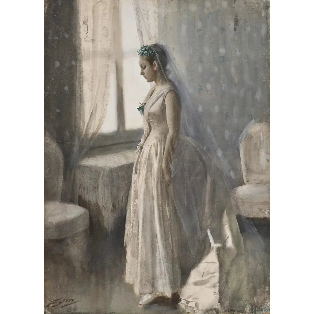 La mariée : portret gracji i elegancji „La mariée” autorstwa Andersa Zorna to dzieło, które uchwyciło ponadczasowe piękno kobiety w tym wyjątkowym dniu. Obraz wyróżnia się żywymi kolorami i subtelnym oświetleniem, które podkreśla wyrafinowane detale sukni ślubnej. Zorn używa techniki malarstwa olejnego, która ożywia fakturę tkanin i delikatne wyrazy twarzy panny młodej. Ogólna atmosfera kompozycji wywołuje celebrację miłości i radości, zachęcając widza do odczuwania emocji tego wyjątkowego momentu. Anders Zorn : wirtuoz portretu i światła Anders Zorn, urodzony w 1860 roku, jest szwedzkim artystą, którego praca zaznaczyła koniec XIX wieku i początek XX wieku. Jego styl, inspirowany impresjonizmem, charakteryzuje się wyjątkową biegłością w operowaniu światłem i cieniem. Zorn zdołał zdobyć uznanie na arenie międzynarodowej, tworząc portrety wybitnych osobowości i eksplorując tematy związane z kulturą szwedzką. „La mariée” jest jednym z jego ikonicznych dzieł, świadczącym o jego umiejętności uchwycenia kobiecego piękna i ludzkich emocji. Dekoracyjny druk artystyczny o wielu zaletach Wybór reprodukcji „La mariée” do swojego wnętrza to dodanie odrobiny elegancji i romantyzmu. Ten obraz doskonale nadaje się do wyrafinowanej dekoracji wnętrz, niezależnie od tego, czy jest to salon, jadalnia czy sypialnia. Jakość reprodukcji zapewnia wierne oddanie szczegółów, pozwalając cieszyć się pięknem dzieła na co dzień. Dzięki estetycznemu urokowi, ta tkanina staje się centralnym elementem Twojej dekoracji, wywołując podziw i emocje, jednocześnie celebrując miłość i piękno.