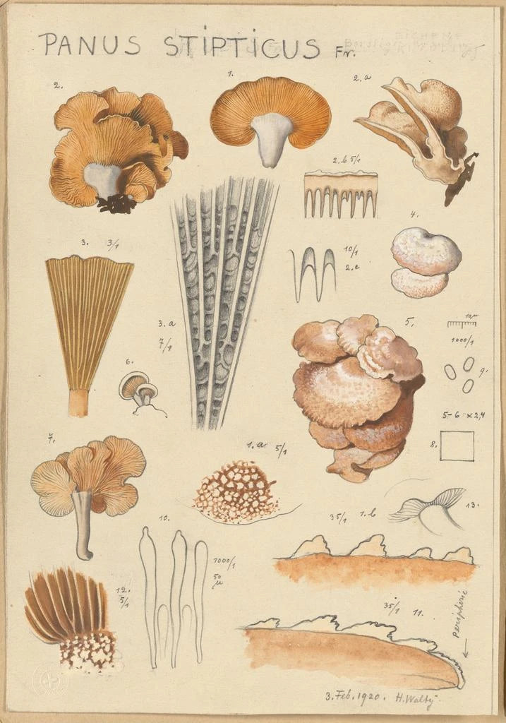 W tym fascynującym dziele Hans Baldung uchwycił efemeryczną istotę natury poprzez szczegółową reprodukcję Panus stipticus. Żywe kolory i delikatne odcienie wywołują atmosferę zarazem mistyczną, jak i realistyczną. Artysta używa techniki malarstwa olejnego, która podkreśla szczegóły grzybów, tworząc efekt świetlny przyciągający wzrok. Każdy element kompozycji wydaje się żywy, jakby grzyby rosły w pełni, zapraszając widza do zgłębienia głębi lasu.