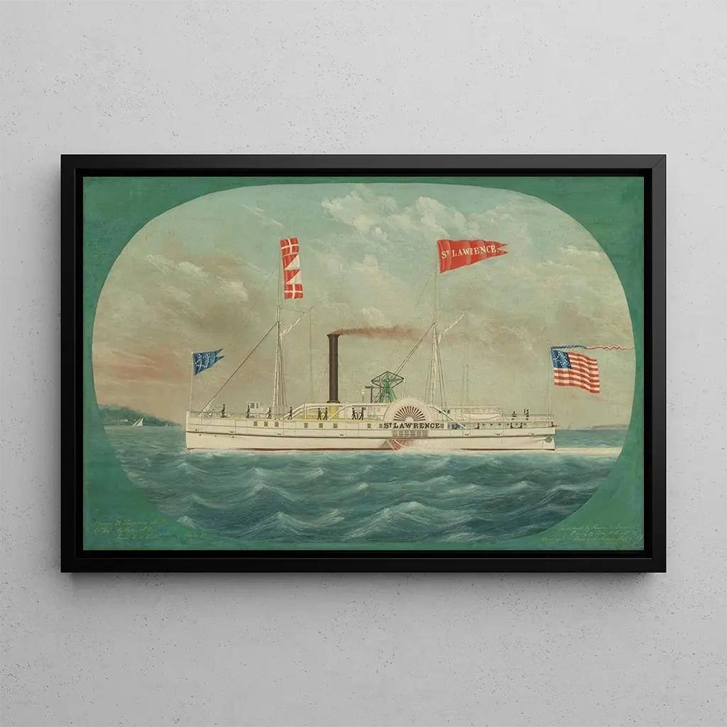 Vapeur Saint-Laurent : hołd dla majestatu rzeki Obraz "Vapeur Saint-Laurent" autorstwa Jamesa Barda oddaje istotę rzeki Saint-Laurent, z jej burzliwymi wodami i zielonymi krajobrazami. Odcienie niebieskiego i zielonego przeplatają się, tworząc atmosferę jednocześnie dynamiczną i uspokajającą. Technika oleju na płótnie pozwala Bardowi bawić się światłem, ożywiając parę wydobywającą się z parowca, symbolu epoki przemysłowej. Ten obraz zaprasza do wizualnej podróży, podczas której niemal można usłyszeć szum fal i gwizd parowca, podziwiając jednocześnie naturalne piękno otaczającej przyrody. James Bard : świadek złotej ery morskiej James Bard, aktywny w XIX wieku, jest znany z przedstawień morskich, które świadczą o znaczeniu dróg wodnych w Ameryce. Pod wpływem romantyzmu, potrafił uchwycić wielkość krajobrazów i potęgę parowców przemierzających rzeki. Jego dzieła, często zamawiane przez firmy żeglugowe, odzwierciedlają nie tylko jego talent, ale także rozwój gospodarczy jego epoki. Bard przyczynił się tym samym do upamiętnienia okresu, gdy transport rzeczny był sercem codziennego życia i handlu. Dekoracyjny druk artystyczny z wieloma zaletami Reprodukcja "Vapeur Saint-Laurent" to idealny element dekoracyjny, który wzbogaci Twój salon, biuro lub sypialnię. Jakość druku i wierne odwzorowanie kolorów sprawiają, że jest to atrakcyjny wybór dla miłośników sztuki. Wkomponowując ten obraz w swoje wnętrze, dodajesz mu elegancji i nostalgii, jednocześnie celebrując dziedzictwo morskie. Ten obraz, z jego żywą atmosferą, z pewnością zachwyci Twoich gości i stworzy ciepłą, przyjazną atmosferę.