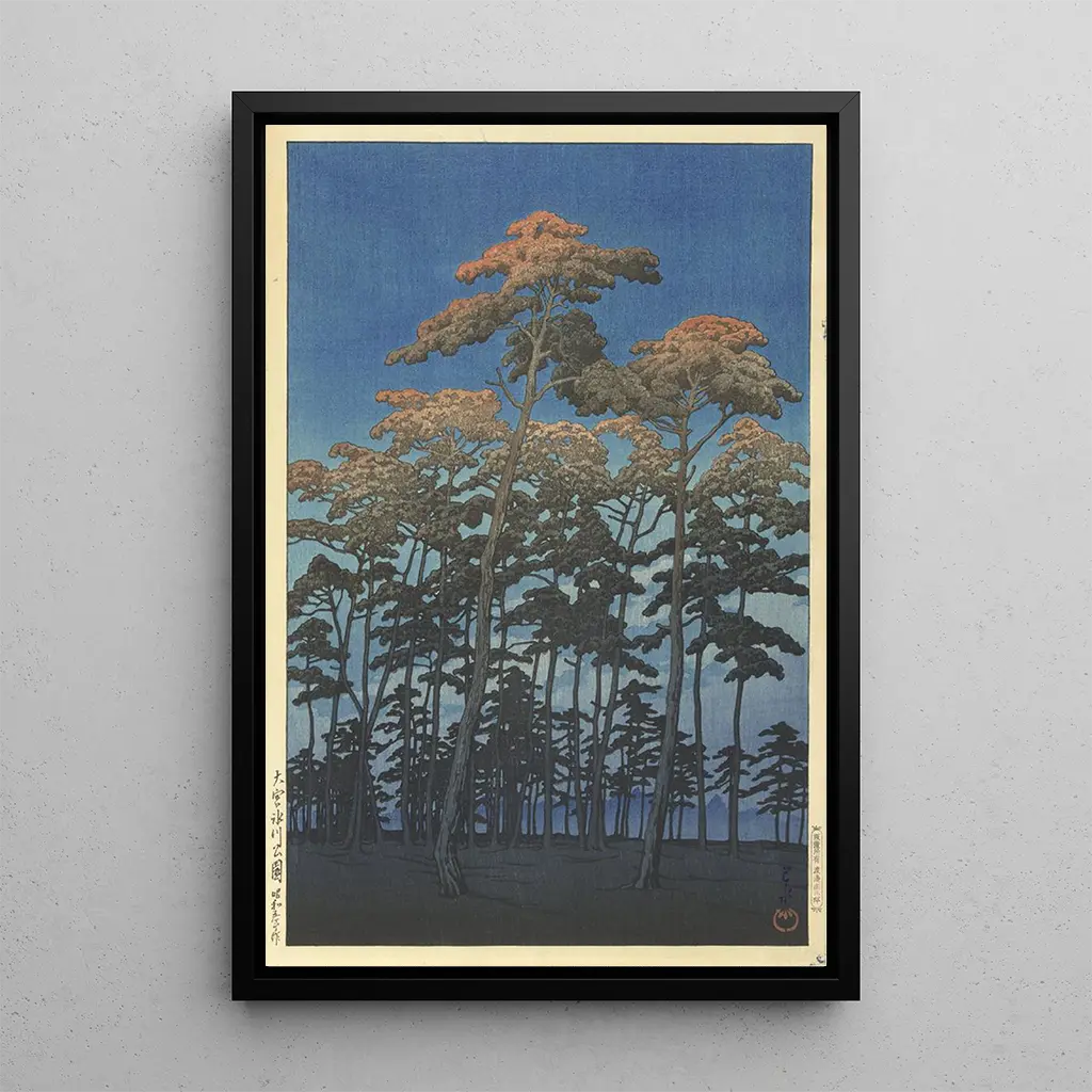 Kawase Hasui, né en 1883, est reconnu comme l'un des grands maîtres de la ukiyo-e, un art traditionnel japonais. Son travail, qui s'étend sur plusieurs décennies, est marqué par une profonde admiration pour les paysages japonais. Hasui a su capturer l'essence de la nature à travers ses œuvres, notamment durant la période Taisho. "Parc Hikawa à Omiya" illustre parfaitement son talent pour représenter la beauté éphémère des saisons et son engagement à préserver l'héritage artistique japonais tout en l'adaptant à son époque.