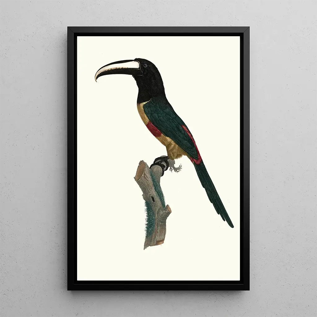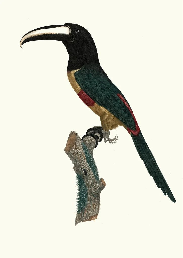 Jacques Barraband, francuski malarz i ilustrator XVIII wieku, jest znany z precyzyjnych i poetyckich przedstawień ptaków. Pod wpływem ruchu naturalistycznego, potrafił uchwycić istotę swoich motywów z niezwykłą dokładnością. Barraband głównie pracował na zlecenie menażerii króla, co pozwoliło mu bliżej studiować egzotyczne okazy. Jego dzieło, w tym druk artystyczny L'Aracari ceinture rouge, jest tego wyraźnym przykładem, świadczącym o jego zaangażowaniu w łączenie sztuki i nauki. Poprzez swoje kreacje przyczynił się do wzbogacenia wiedzy ornitologicznej swojej epoki.