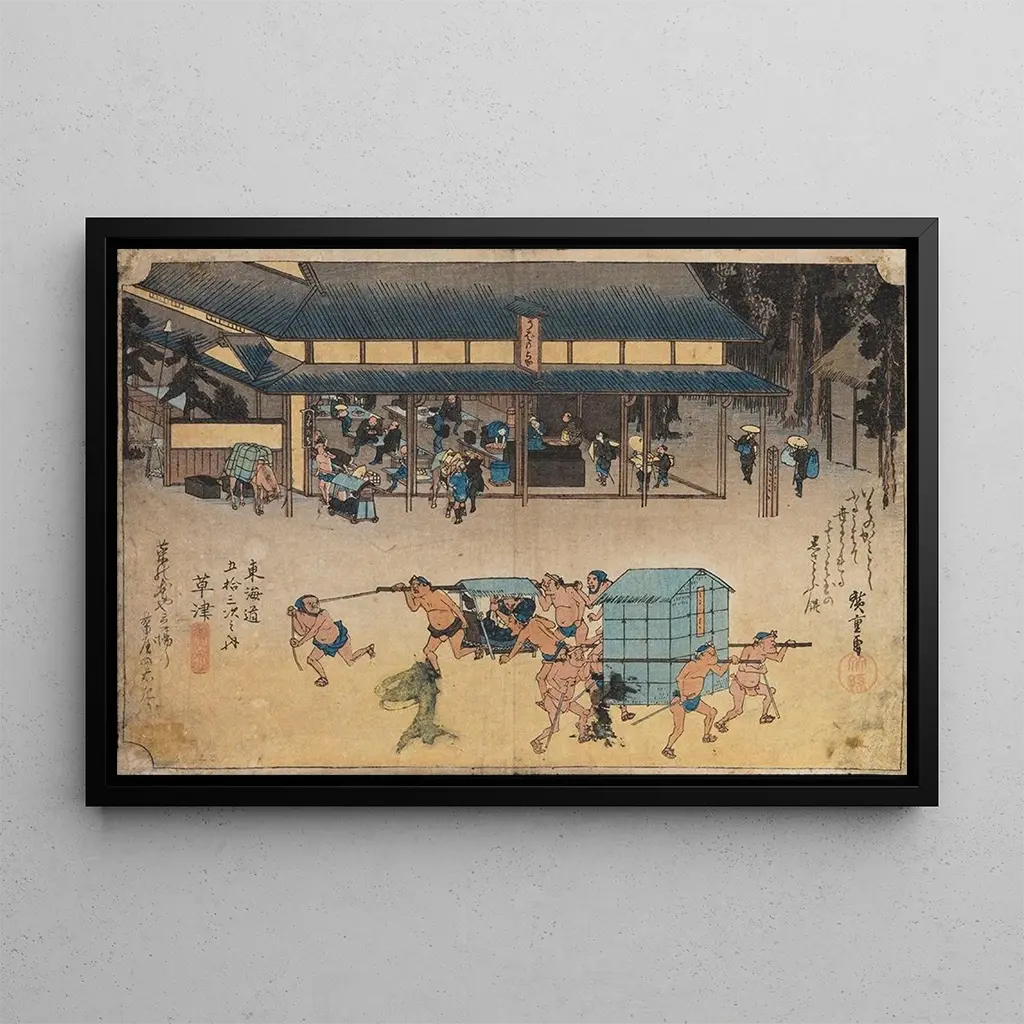 La reproduction de Paysage à Kusatsu d'Andō Hiroshige nous plonge dans un monde où la nature et l'harmonie se rencontrent. Cette œuvre emblématique présente des montagnes majestueuses, des rivières sinueuses et des arbres délicatement stylisés, le tout baigné dans des teintes pastel apaisantes. La technique de l'estampe sur bois, caractéristique de l'art japonais, permet à Hiroshige de créer des textures riches et des nuances subtiles. L'atmosphère qui se dégage de cette toile est à la fois contemplative et vivifiante, invitant le spectateur à s'évader dans ce paysage enchanteur.