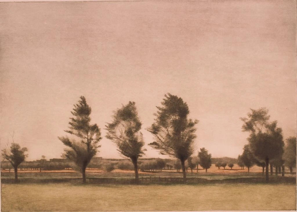 W Krajobrazie Falster, Peter Ilsted przenosi nas do obrazu pełnego spokoju i naturalnego piękna. Delikatna kompozycja, w której mieszają się zielone pola i pochmurne niebo, wywołuje atmosferę spokojnej kontemplacji. Łagodne kolory, od uspokajających odcieni zieleni po odcienie niebieskiego, tworzą wizualną harmonię, która zachęca do marzeń. Technika malarstwa olejnego, charakterystyczna dla artysty, pozwala uchwycić światło i cienie z niezwykłą precyzją, ożywiając ten idylliczny krajobraz.