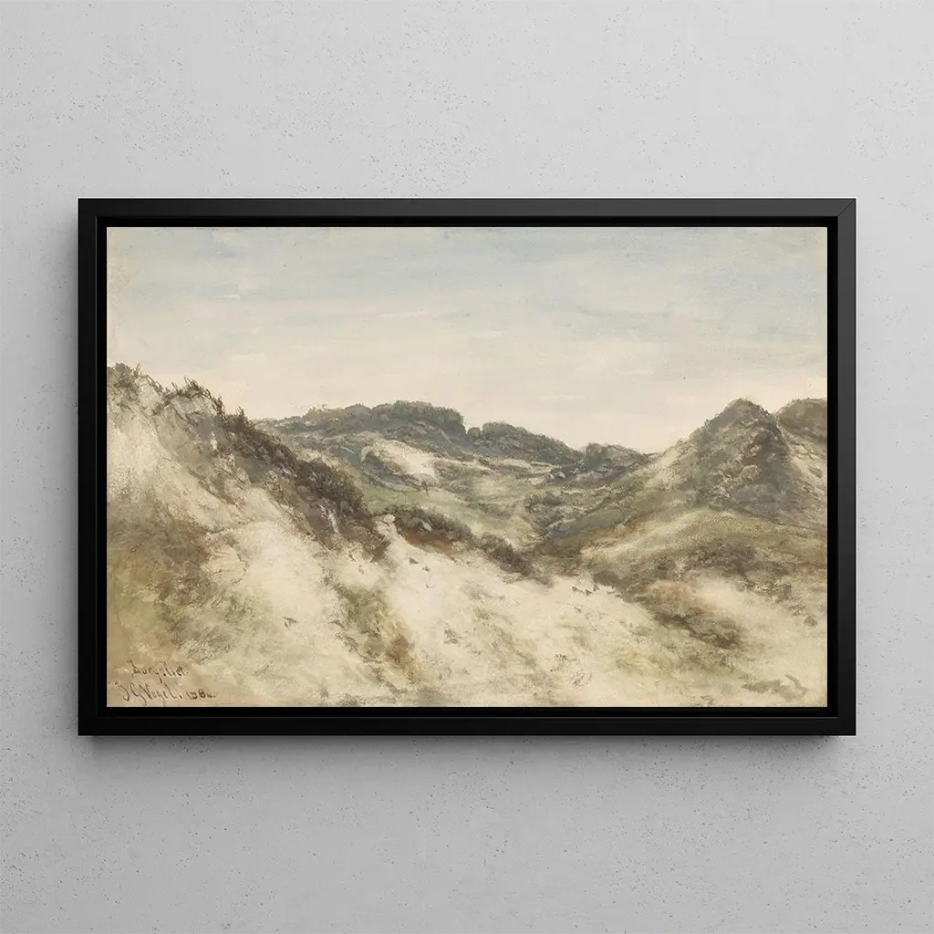 Dans cette œuvre, Johannes Gijsbert Vogel nous invite à explorer un paysage de dunes, où le sable doré rencontre le ciel azur. La composition harmonieuse de la toile, avec ses courbes douces et ses nuances de couleurs chaudes, évoque une sensation de tranquillité et d’évasion. Les détails minutieux des herbes et des ombres créent une atmosphère vivante, presque palpable. La technique de Vogel, qui allie impressionnisme et réalisme, permet de ressentir la chaleur du soleil et le souffle du vent sur cette plage sauvage, offrant ainsi une véritable immersion dans la nature.