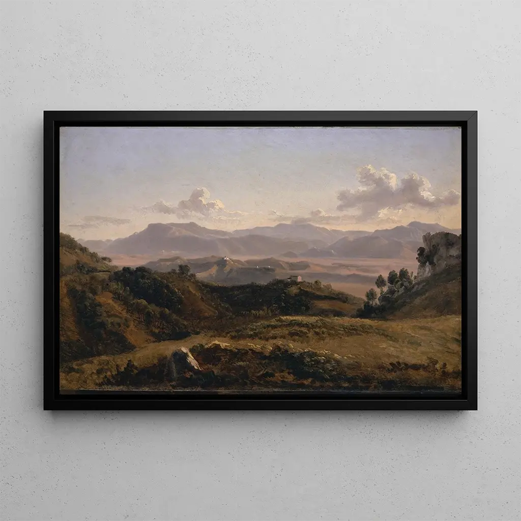 Druk artystyczny Krajobraz w pobliżu Olevano autorstwa Friedricha Salathé przenosi nas w serce sielankowego pejzażu, gdzie natura rozkwita w pełnej krasie. To dzieło, zanurzone w świetle, ukazuje zielone wzgórza i błękitne niebo, tworząc spokojną i kojącą atmosferę. Odmiany zieleni i błękitu harmonijnie się przenikają, a ciepłe akcenty kolorystyczne uzupełniają kompozycję. Salathé zdołał uchwycić piękno włoskich krajobrazów z delikatnością, która zachęca do kontemplacji i ucieczki.