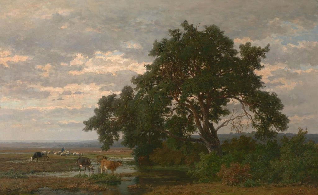Druk artystyczny Paysage de lande przedstawia sielankową scenę, w której podkreślona jest piękno naturalnych krajobrazów. Delikatne odcienie ziemi i nieba harmonijnie się mieszają, tworząc spokojną i wyciszającą atmosferę. Frans Keelhoff, dzięki swojej delikatnej technice malarskiej, potrafi uchwycić światło i cień, ożywiając tę płótno. Drobne szczegóły traw i chmur dodają dziełu wymiaru dotykowego, zapraszając widza do zanurzenia się w tej dzikiej naturze. Ten obraz wywołuje nostalgię za prostszymi czasami, gdy człowiek żył w harmonii ze swoim otoczeniem.