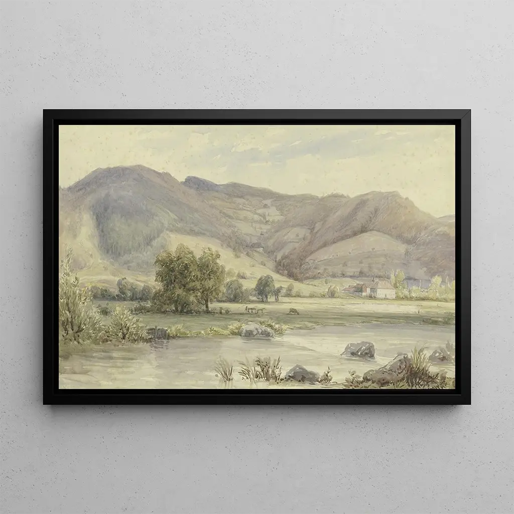 Druk artystyczny Krajobraz rzeczny z wysokimi górami autorstwa Petera Burnitza wywołuje kojące uczucie spokoju poprzez idylliczny pejzaż. Ta płótno przedstawia meandrującą rzekę pomiędzy majestatycznymi górami, gdzie światło gra na tafli wody. Odmiany zieleni i błękitu harmonijnie się przenikają, tworząc atmosferę pokoju i kontemplacji. Burnitz, ze swoim delikatnym stylem, potrafi uchwycić wspaniałe piękno natury, zapraszając widza do zanurzenia się w tym czarującym obrazie.