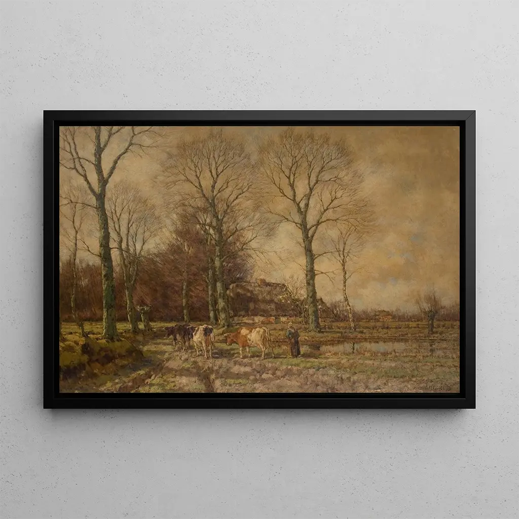 Paysage avec bétail : harmonia między naturą a życiem wiejskim W tym urzekającym dziele Arnold Marc Gorter przenosi nas w idylliczny pejzaż, gdzie bydło spokojnie pasie się pod rozległym i jasnym niebem. Delikatne i naturalne kolory, od jaskrawych zieleni po ciepłe brązy, tworzą spokojną i kojącą atmosferę. Technika malarstwa olejnego pozwala oddać szczegóły z niezwykłą precyzją, od refleksów na sierści zwierząt po odcienie ziemi. Ten druk artystyczny wywołuje nostalgię za życiem na wsi, gdzie człowiek i natura współistnieją w doskonałej harmonii, zapraszając widza do spokojnej kontemplacji. Arnold Marc Gorter : świadek piękna holenderskich pejzaży Arnold Marc Gorter, holenderski malarz XIX wieku, jest znany z umiejętności uchwycenia piękna pejzaży swojego kraju. Pod wpływem ruchu realizmu, wpisuje się w artystyczną tradycję, która ceni wierne przedstawianie natury. Gorter był również pod wpływem szkoły w Hadze, która promowała bezpośrednią obserwację scen z codziennego życia. Jego dzieła, często pełne światła i koloru, świadczą o głębokim szacunku dla wiejskiego środowiska i życia rolników. To dzieło, podobnie jak wiele innych, ilustruje jego zaangażowanie w uwiecznianie piękna holenderskich pejzaży. Dekoracyjny nabytek o wielu zaletach Druk artystyczny pejzażu z bydłem to idealny element dekoracyjny do każdego wnętrza, niezależnie od tego, czy jest to salon, biuro czy sypialnia. Jakość druku gwarantuje wierne odwzorowanie kolorów i szczegółów oryginalnego dzieła, dodając elegancji i spokoju Twojej przestrzeni. Ten obraz zachęca do marzeń i kontemplacji, jednocześnie dodając artystyczny wymiar Twojej dekoracji. Dzięki swojej estetycznej atrakcyjności, ta płótno z pewnością przypadnie do gustu miłośnikom sztuki i pasjonatom natury, zamieniając każdy spojrzenie w chwilę spokoju i ucieczki.