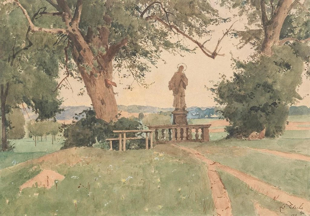 Krajobraz z figurą św. Nepomucena - Eduard Zetsche