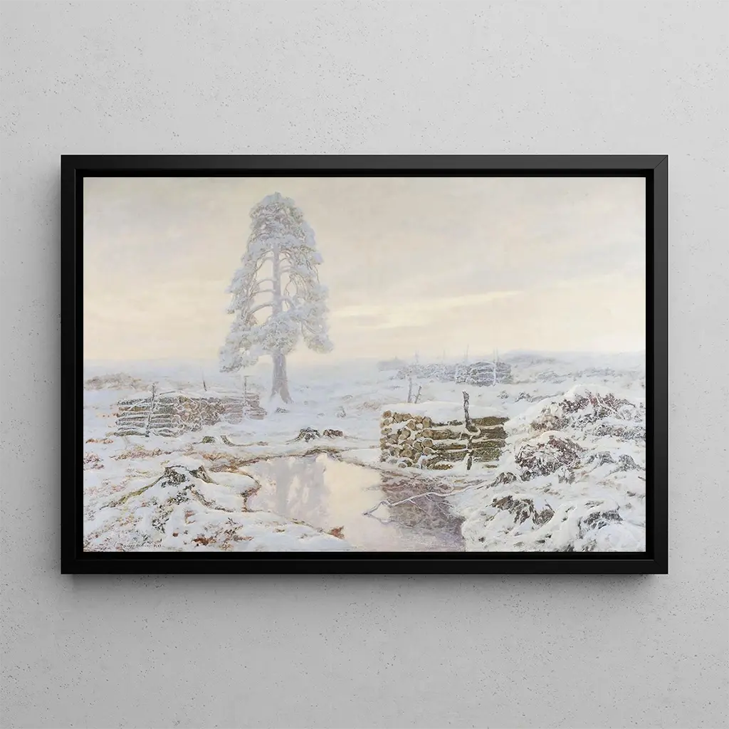 Zimowy pejzaż: lodowa harmonia w sercu natury Obraz "Zimowy pejzaż" Józefa Rapackiego ukazuje spokojną scenę, w której śnieg delikatnie pokrywa krajobraz. Chłodne odcienie niebieskiego i białego dominują w kompozycji, tworząc atmosferę spokoju i ciszy. Technika artysty, łącząca realizm i impresjonizm, pozwala odczuć świeżość zimowego powietrza. Detale nagich drzew i cieni rzucanych na śnieg dodają tej pracy niemal dotykową wymiarowość, zachęcając widza do zanurzenia się w tym spokojnym świecie. Józef Rapacki: mistrz polskiego pejzażu Józef Rapacki, działający w XIX wieku, jest ceniony za umiejętność uchwycenia piękna polskich krajobrazów. Pod wpływem romantyzmu, wpisuje się w artystyczną tradycję, która ceni naturę i ludzkie emocje. Jego dzieła, często pełne melancholii, świadczą o epoce, w której sztuka była środkiem wyrazu uczuć wobec natury. Rapacki umiejętnie łączył elementy realizmu z poetyckimi akcentami, czyniąc go ważną postacią polskiej sztuki swojego czasu. Dekoracyjny druk artystyczny o wielu zaletach Druk artystyczny "Zimowy pejzaż" to idealny element dekoracyjny, który wnosi do wnętrza odrobinę spokoju. Niezależnie od tego, czy znajduje się w salonie, biurze czy sypialni, ten obraz zachęca do kontemplacji i marzeń. Jakość reprodukcji gwarantuje wierne oddanie szczegółów i kolorów oryginału, jednocześnie oferując niezaprzeczalną estetykę. Wiszący na ścianie, staje się punktem centralnym, który wzbogaca atmosferę przestrzeni, jednocześnie przywołując ponadczasowe piękno zimy.